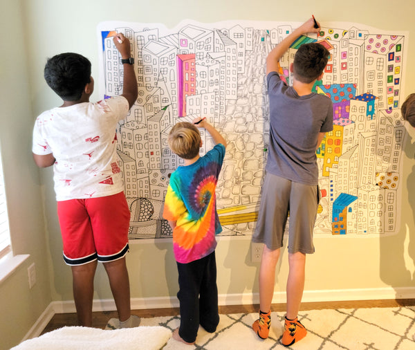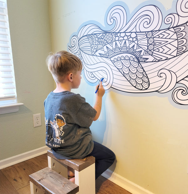 Coloritsy can be colored before or after sticking to your wall, it is your choice! While most kids love coloring Coloritsy on the wall, it is perfectly fine to color it at the table and then display their artwork on the wall without the need of pins or tape. It is super easy to place on the wall and can be repositioned many times.